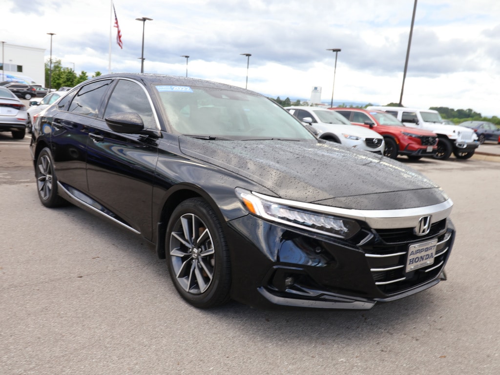 CV1F5NJNW - Airport Honda is proud to present you with another True Market Priced Pre-Owned Vehicle. This 2022 Honda Accord EX-L is loaded with the following Factory Options:Black Leather; 10 Speakers; 17 Machine-Finished Alloy Wheels; 4-Wheel Disc Brakes; ABS brakes; Adaptive Cruise Control: Adaptive Cruise Control (ACC) with Low-Speed Follow; Air Conditioning; Alloy wheels; AM/FM radio: SiriusXM; Apple CarPlay/Android Auto; Auto High-beam Headlights; Auto-dimming Rear-View mirror; Automatic temperature control; Blind Spot Information (BSI) System warning; Brake assist; Bumpers: body-color; Delay-off headlights; Driver door bin; Driver vanity mirror; Dual front impact airbags; Dual front side impact airbags; Electronic Stability Control; Emergency communication system: HondaLink; Exterior Parking Camera Rear; Forward collision: Collision Mitigation Braking System (CMBS) + FCW mitigation; Four wheel independent suspension; Front anti-roll bar; Front Bucket Seats; Front Center Armrest; Front dual zone A/C; Front fog lights; Front reading lights; Fully automatic headlights; Garage door transmitter: HomeLink; Heated door mirrors; Heated Front Bucket Seats; Heated front seats; Illuminated entry; Knee airbag; Lane Departure Warning System; Leather Shift Knob; Leather steering wheel; Low tire pressure warning; Memory seat; Occupant sensing airbag; Outside temperature display; Overhead airbag; Overhead console; Panic alarm; Passenger door bin; Passenger vanity mirror; Perforated Leather Seat Trim; Power door mirrors; Power driver seat; Power moonroof; Power passenger seat; Power steering; Power windows; Radio data system; Radio: 450-Watt AM/FM/HD Premium Audio System; Rear anti-roll bar; Rear seat center armrest; Rear window defroster; Remote keyless entry; Security system; Speed control; Speed-sensing steering; Speed-Sensitive Wipers; Split folding rear seat; Steering wheel mounted audio controls; Tachometer; Telescoping steering wheel; Tilt steering wheel; Traction control; Trip computer; Turn signal indicator mirrors; and Vari