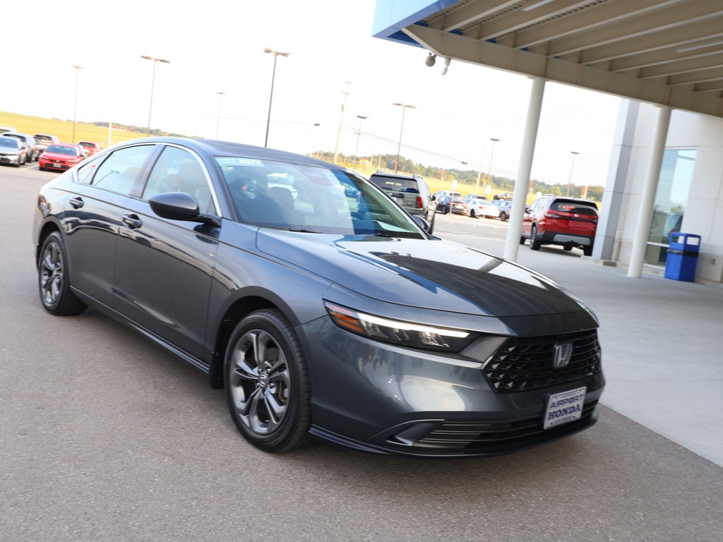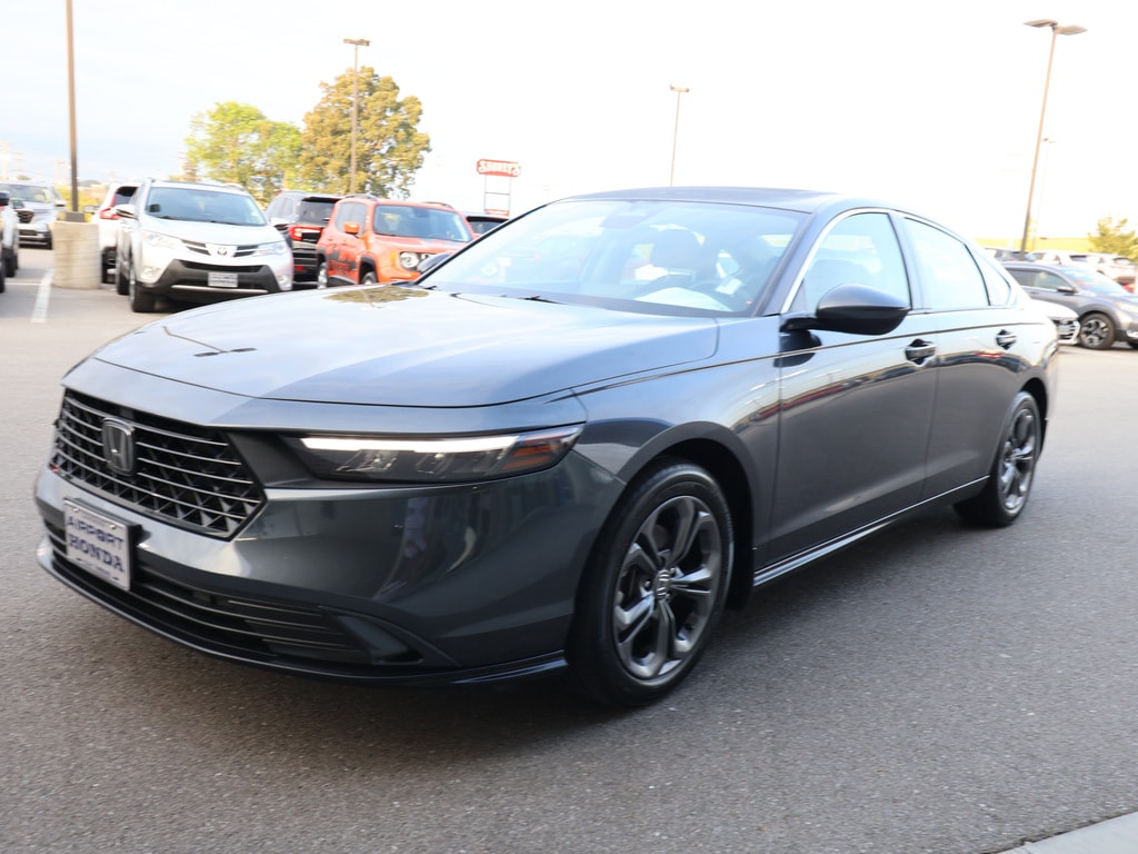 Airport Honda is proud to present you with another True Market Priced Pre-Owned Vehicle. This 2023 Honda Accord EX is loaded with the following Factory Options:Gray Cloth; 4-Wheel Disc Brakes; 8 Speakers; ABS brakes; Adaptive Cruise Control: Adaptive Cruise Control (ACC) with Low-Speed Follow; Air Conditioning; Alloy wheels; AM/FM radio; Apple CarPlay/Android Auto; Auto High-beam Headlights; Auto-dimming Rear-View mirror; Automatic temperature control; Brake assist; Bumpers: body-color; Compass; Delay-off headlights; Driver door bin; Driver vanity mirror; Dual front impact airbags; Dual front side impact airbags; Electronic Stability Control; Emergency communication system: HondaLink Assist; Exterior Parking Camera Rear; Fabric Seat Trim; Four wheel independent suspension; Front anti-roll bar; Front Bucket Seats; Front Center Armrest; Front dual zone A/C; Front reading lights; Fully automatic headlights; Heated door mirrors; Heated Front Bucket Seats; Heated front seats; Illuminated entry; Knee airbag; Lane departure: Lane Keeping Assist System (LKAS) active; Low tire pressure warning; Occupant sensing airbag; Outside temperature display; Overhead airbag; Overhead console; Panic alarm; Passenger door bin; Passenger vanity mirror; Power door mirrors; Power driver seat; Power moonroof; Power steering; Power windows; Radio data system; Radio: 180-Watt AM/FM Audio System; Rear anti-roll bar; Rear reading lights; Rear seat center armrest; Rear side impact airbag; Rear window defroster; Remote keyless entry; Security system; Speed control; Speed-sensing steering; Speed-Sensitive Wipers; Split folding rear seat; Steering wheel mounted audio controls; Tachometer; Telescoping steering wheel; Tilt steering wheel; Traction control; Trip computer; Variably intermittent wipers; and Wheels: 17 x 7.5 Pewter Gray.