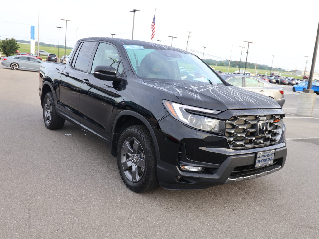 YK3F6RKNW - Airport Honda is proud to present you with another True Market Priced Pre-Owned Vehicle. This 2024 Honda Ridgeline TrailSport is loaded with the following Factory Options:Black Artificial Leather; 4-Wheel Disc Brakes; 4.33 Axle Ratio; 7 Speakers; ABS brakes; Air Conditioning; Alloy wheels; AM/FM radio: SiriusXM; Auto-dimming Rear-View mirror; Automatic temperature control; Blind Spot Information (BSI) System warning; Bluetooth Hands-Free Link; Brake assist; Bumpers: body-color; Compass; Delay-off headlights; Driver door bin; Driver vanity mirror; Driver`s Seat Mounted Armrest; Dual front impact airbags; Dual front side impact airbags; Electronic Stability Control; Emergency communication system: HondaLink Assist; Exterior Parking Camera Rear; Four wheel independent suspension; Front anti-roll bar; Front Bucket Seats; Front dual zone A/C; Front fog lights; Front reading lights; Fully automatic headlights; Garage door transmitter: HomeLink; Heated door mirrors; Heated Front Bucket Seats; Heated front seats; Honda Satellite-Linked Navigation System; Illuminated entry; Leather steering wheel; Leatherette Seat Trim; Low tire pressure warning; Memory seat; Navigation system: Honda Satellite-Linked Navigation System; Occupant sensing airbag; Outside temperature display; Overhead airbag; Overhead console; Panic alarm; Passenger door bin; Passenger seat mounted armrest; Passenger vanity mirror; Power door mirrors; Power driver seat; Power moonroof; Power passenger seat; Power steering; Power windows; Radio data system; Radio: 215-Watt Audio System w/7 Speakers; Rear air conditioning; Rear anti-roll bar; Rear reading lights; Rear seat center armrest; Rear step bumper; Rear window defroster; Remote keyless entry; Security system; SiriusXM; Speed control; Speed-sensing steering; Split folding rear seat; Steering wheel mounted audio controls; Tachometer; Telescoping steering wheel; Tilt steering wheel; Traction control; Trip computer; Turn signal indicator mirrors; Variably intermittent wipers; Wheels: 18 TrailSport Pewte