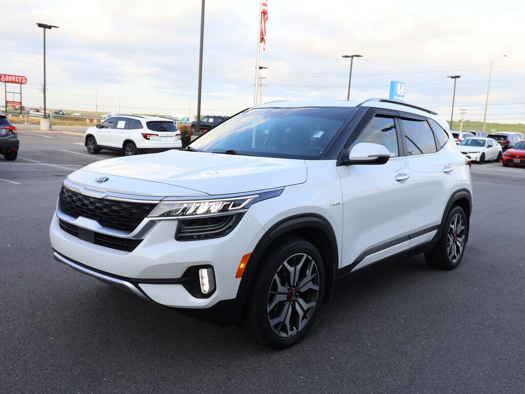 K4482 - Recent Arrival! Airport Honda is proud to present you with another True Market Priced Pre-Owned Vehicle. This 2021 Kia Seltos SX is loaded with the following Factory Options:SX Sunroof Package (Sunroof); 18 Alloy Wheels; 4-Wheel Disc Brakes; 4.643 Axle Ratio; 8 Speakers; ABS brakes; Air Conditioning; Alloy wheels; AM/FM radio: SiriusXM; Apple CarPlay & Android Auto; Auto-dimming Rear-View mirror; Automatic temperature control; Brake assist; Bumpers: body-color; Cargo Mat; Carpeted Floor Mats; Delay-off headlights; Driver door bin; Driver vanity mirror; Dual front impact airbags; Dual front side impact airbags; Electronic Stability Control; Emergency communication system; Exterior Parking Camera Rear; Four wheel independent suspension; Front anti-roll bar; Front Bucket Seats; Front Center Armrest; Front fog lights; Front reading lights; Fully automatic headlights; Heated door mirrors; Heated Front Bucket Seats; Heated front seats; Illuminated entry; Leather Seat Trim; Leather Shift Knob; Low tire pressure warning; Navigation System; Occupant sensing airbag; Outside temperature display; Overhead airbag; Overhead console; Panic alarm; Passenger door bin; Passenger vanity mirror; Power door mirrors; Power driver seat; Power steering; Power windows; Radio: AM/FM/MP3 Display Audio; Rear seat center armrest; Rear window defroster; Rear window wiper; Remote keyless entry; Security system; Smart Key w/ Push Button and Remote Start; Speed control; Speed-sensing steering; Split folding rear seat; Spoiler; Steering wheel mounted audio controls; Tachometer; Telescoping steering wheel; Tilt steering wheel; Traction control; Trip computer; Turn signal indicator mirrors; and Variably intermittent wipers.